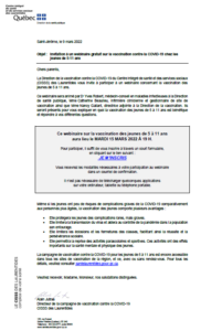 Vaccination contre la COVID-19 des enfants de 5-11 ans : invitation du CISSS des Laurentides à un webinaire.